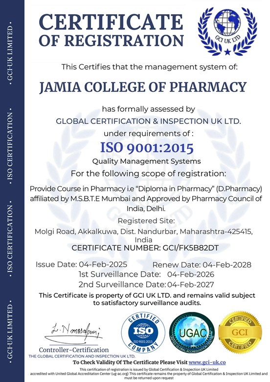 Jamia College of Pharmacy, Akkalkuwa, offers quality pharmacy education with modern labs, digital classrooms, and expert faculty, focusing on rural student development since 2003.